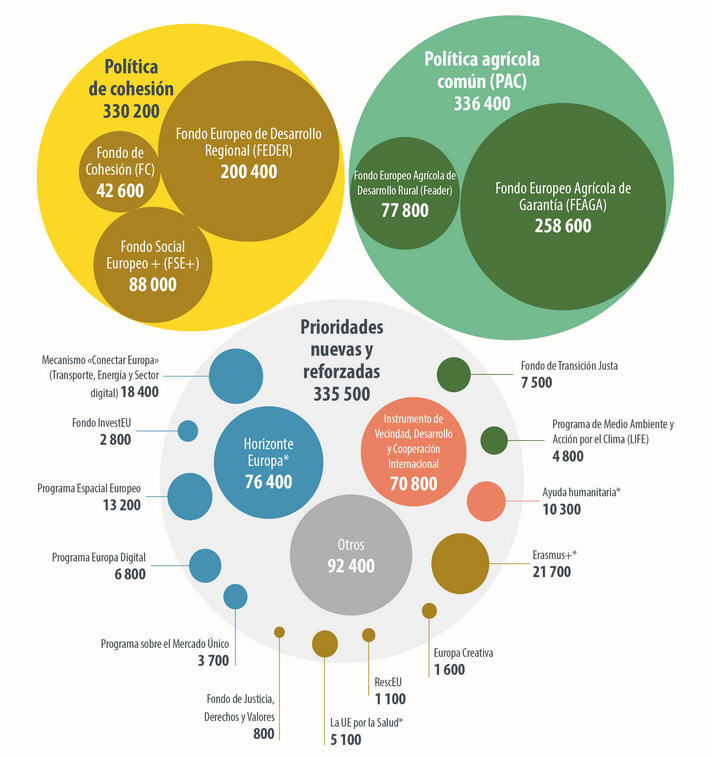 El marco financiero plurianual (MFP) abarca el período 2021-2027, aunque los proyectos que pueden financiarse con estos fondos pueden ejecutarse hasta 2029. En el marco del MFP, la financiación de la UE se destinará a prioridades nuevas y reforzadas en todos los ámbitos de actuación de la UE, también a las transiciones ecológica y digital. La política de cohesión y la política agrícola común seguirán recibiendo una financiación significativa y se actualizarán para garantizar que contribuyen del mejor modo posible a la recuperación económica de Europa y a los objetivos ecológicos y digitales de la UE.