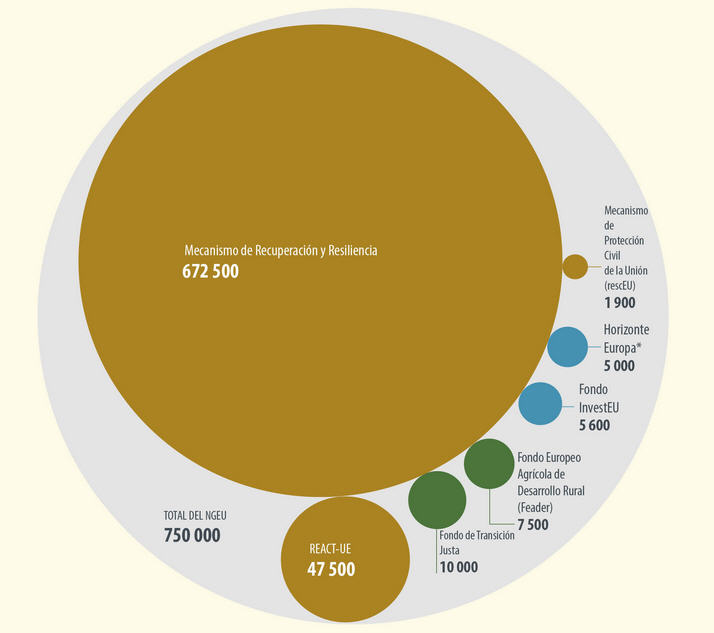 • el Instrumento de Recuperación, de carácter extraordinario, «Next Generation EU» (NGEU) de 750 000 millones de euros.